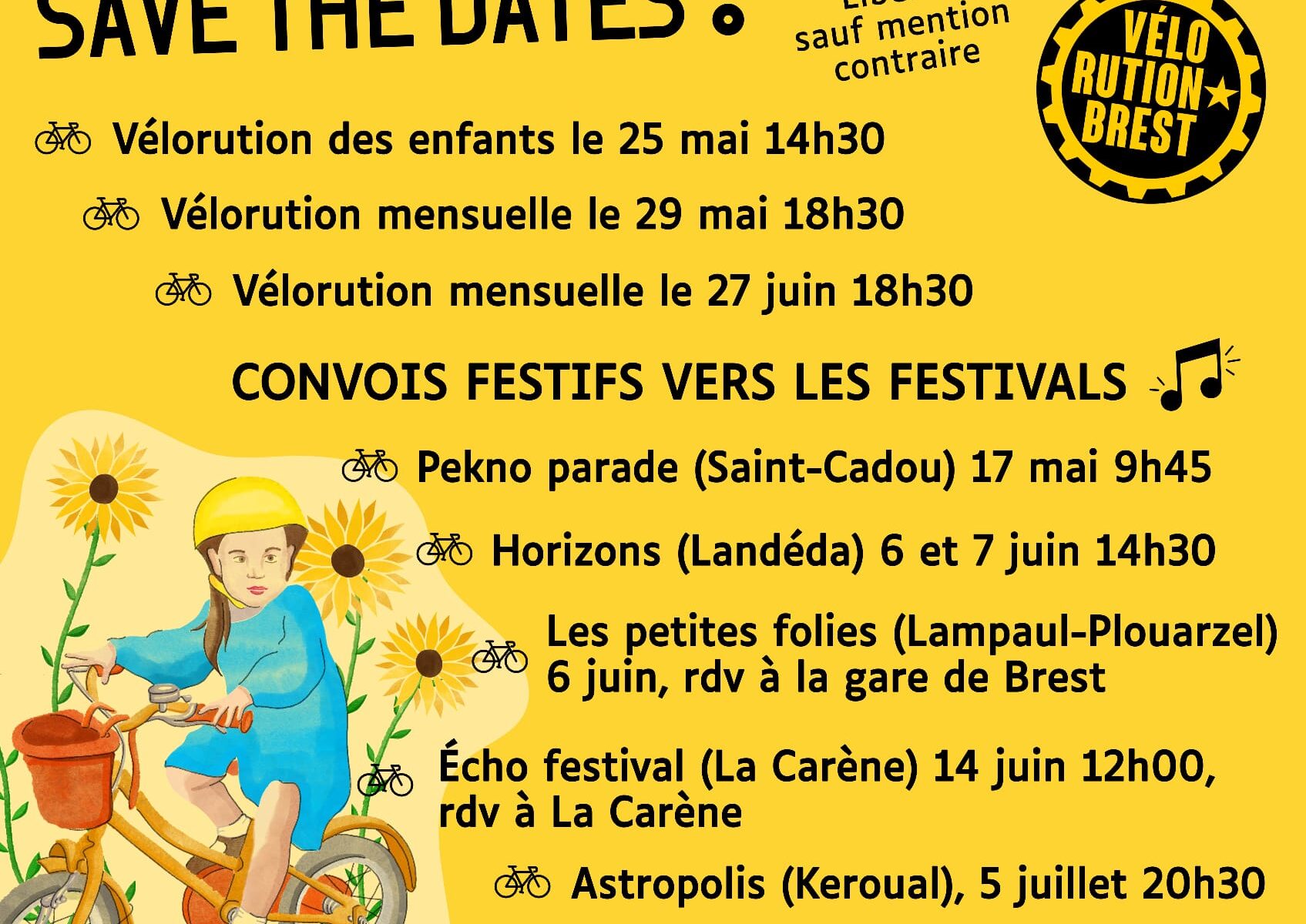 Des Vélorutions des enfants sont organisées deux fois par an, dans le cadre du mouvement mondial Kidical Mass. La prochaine aura lieu le dimanche 25 mai. Rdv place de la Liberté à 14h30.