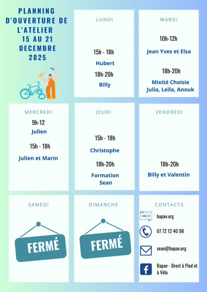 Nos créneaux sont tenus par des bénévoles. Les horaires peuvent être amenés à changer au cours de la semaine, nous tâchons de modifier le planning en conséquence.