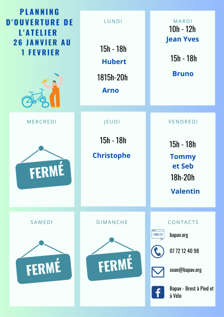 Nos créneaux sont tenus par des bénévoles. Les horaires peuvent être amenés à changer au cours de la semaine, nous tâchons de modifier le planning en conséquence.